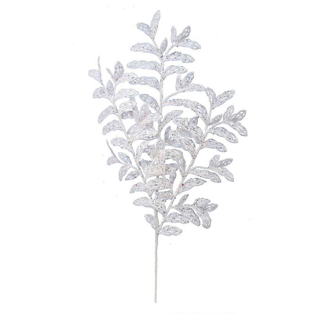 | Manufacturer Description: | 22″ White Bipinnate Glitt Lf Spray 12/Bg (L186111) | ||
